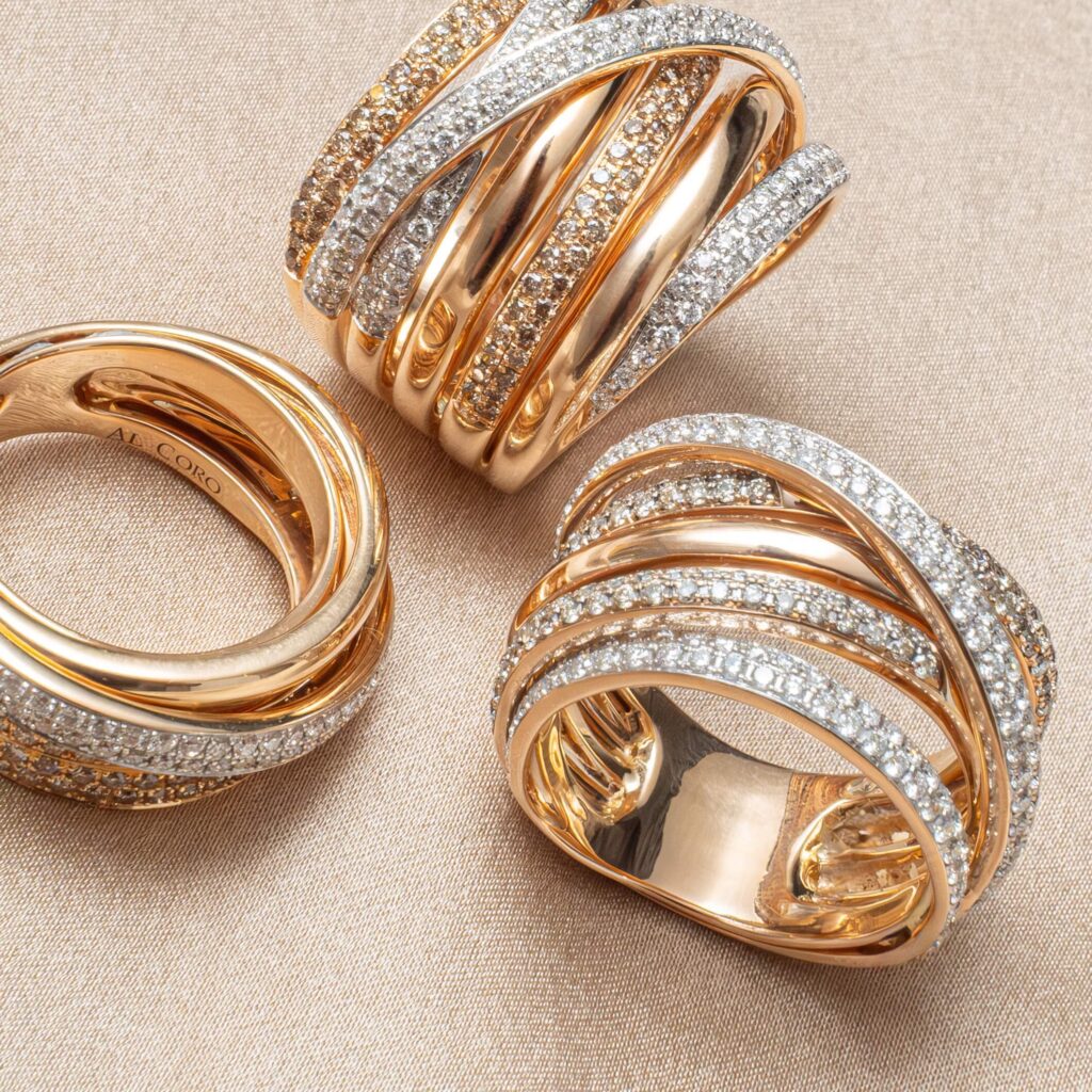 - Bicolor ringen: een combinatie van twee kleuren goud, bijvoorbeeld wit- en geelgoud.